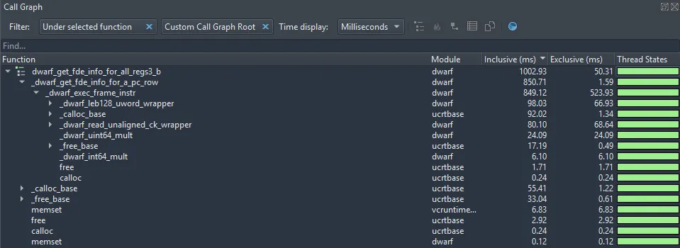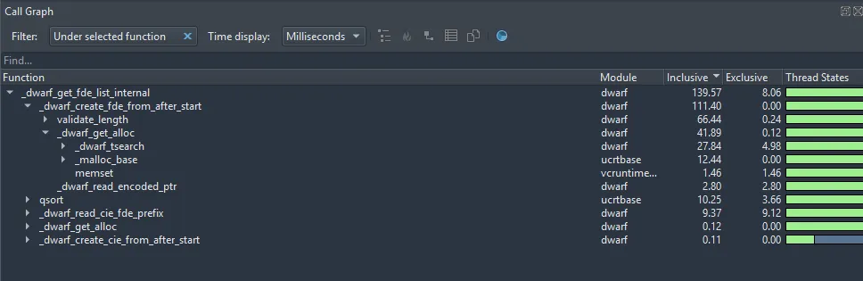 _dwarf_create_fde_from_after_start. - More time than expected is spent in what seems to be a validation function (66ms in